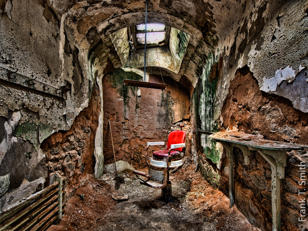 I recently had the pleasure to lead a workshop with Creve Coure Camera which was sponsored by Olympus at the Missouri State Penitentiary in Jefferson, MO. The following images were taken during the workshop. This was my first experience at this location. I have photographed the Eastern State Penitentiary in Philadelphia many times, so I was somewhat familiar with what to expect. There were many similarities, but there were equally as many differences. One of the differences was that this facility had it’s own gas chamber. I must admit, I had a very eerie feeling in here. The prison operated from 1836 – 2004. Many of the images were processed in-camera with a monochromatic filter and a couple of them in HDR. The equipment I used was the Olympus PEN-F paired with the M.Zuiko ED 8mm F1.8 Fisheye PRO & the OM-D E-M5 MkII paired with the M.Zuiko ED 7-14mm f2.8 PRO (an amazing combination).