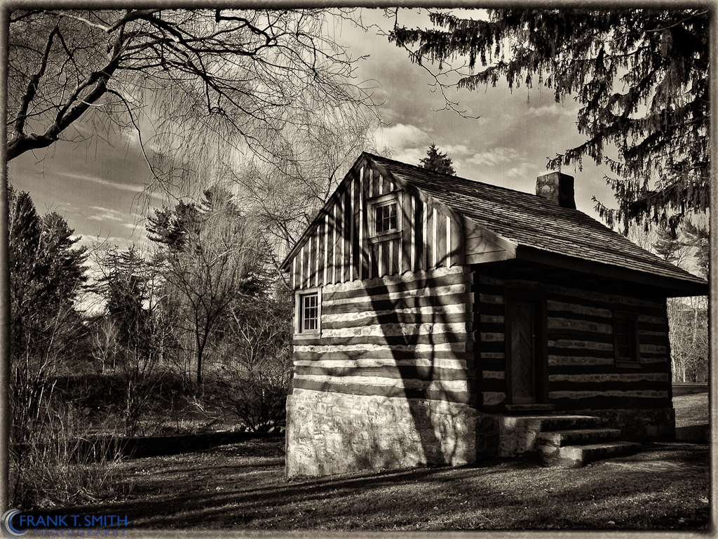 This final image is a shot of an old hunting cabin adjacent to the the foot bridge.